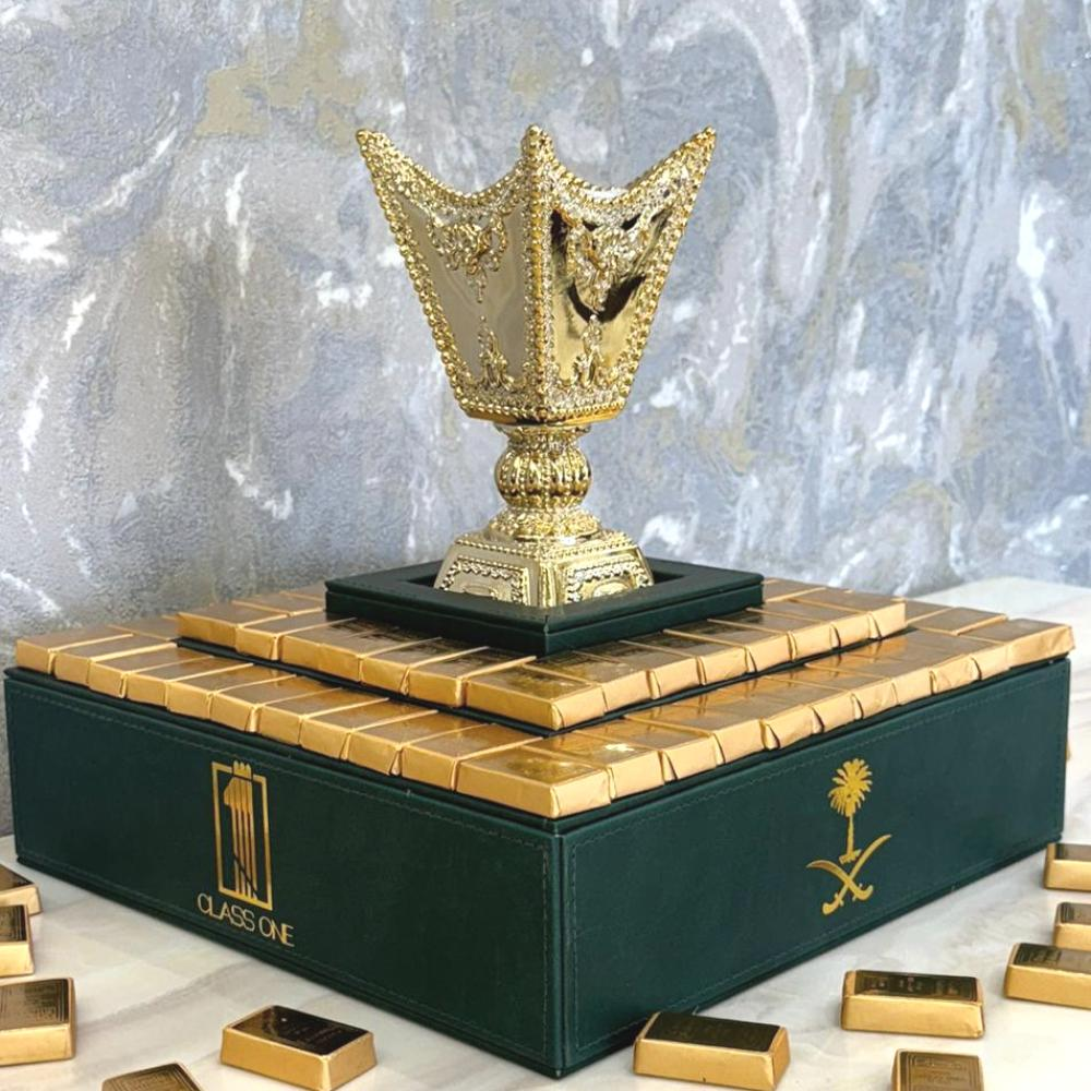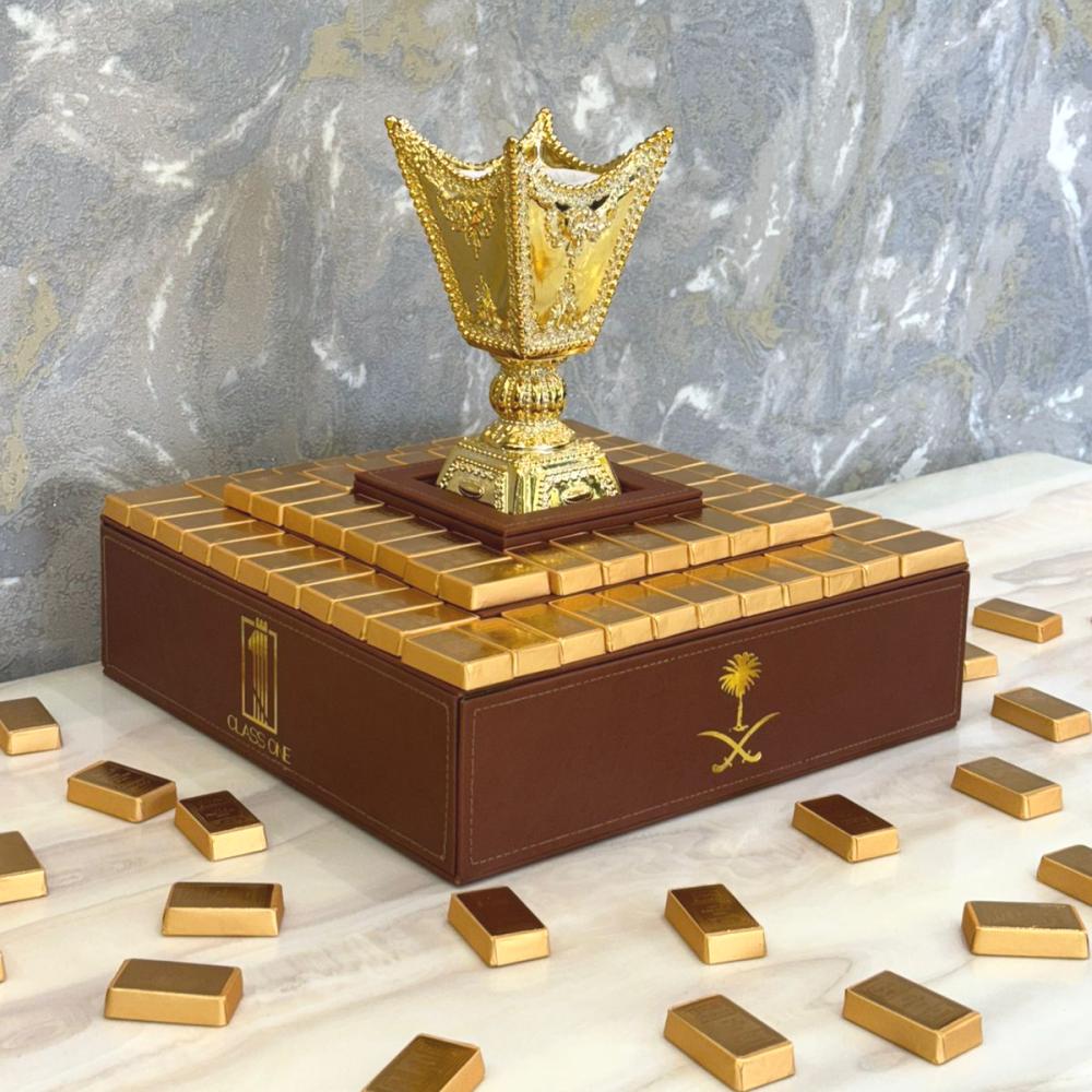 اجعل كل مناسبة مميزة مع تقديمية فاخرة من كلاس ون، بتصميم سبايك ذهبية أنيق يضم تشكيلة من الشوكولاته البلجيكية الفاخرة. هدية استثنائية أو قطعة ضيافة فريدة تضيف لمسة ملكية على أجواء مناسبتك.