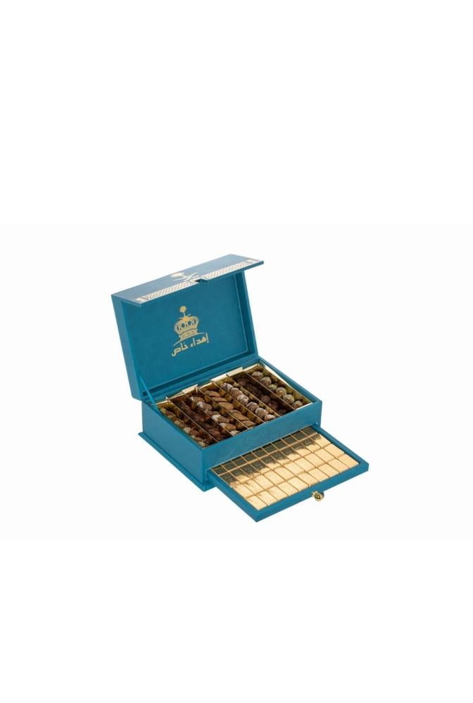 استمتع بتجربة استثنائية مع شوكولاتة بلجيكية ديلوكس التي تجمع بين الفخامة والطابع المميز. بوكس أنيق بتصميم فاخر يضم مزيج رائع من تمر محشو فاخر و شوكولاتة بلجيكية مغلفة بتصميم يشبه السبائك الذهبية ليقدم لك توليفة فريدة من الأصالة والرقي.